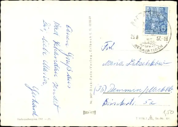 Zustand, siehe Scan, gelaufen, 1957 - ca 15 cm X 10 cm