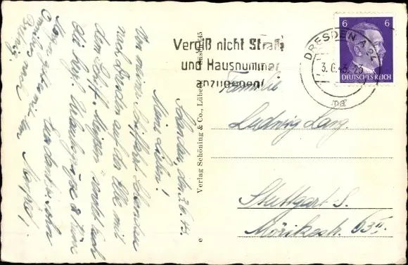 Zustand, siehe Scan, gelaufen, 1943 - ca 9 cm X 14 cm