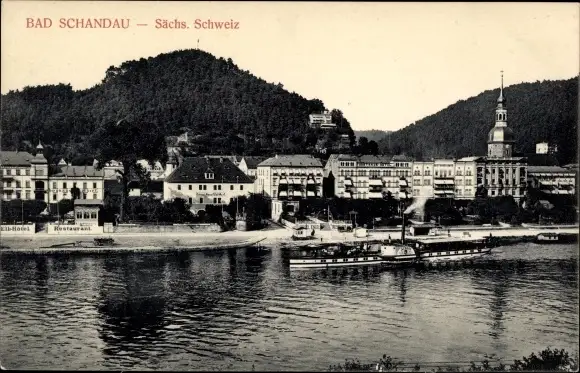 Ak Bad Schandau Sächsische Schweiz, Teilansicht, Dampfer