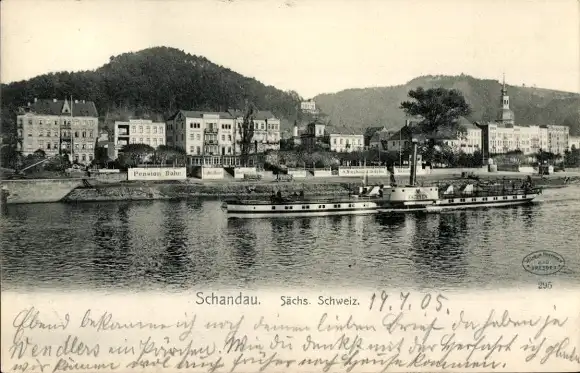 Ak Bad Schandau Sächsische Schweiz, Teilansicht, Schiff