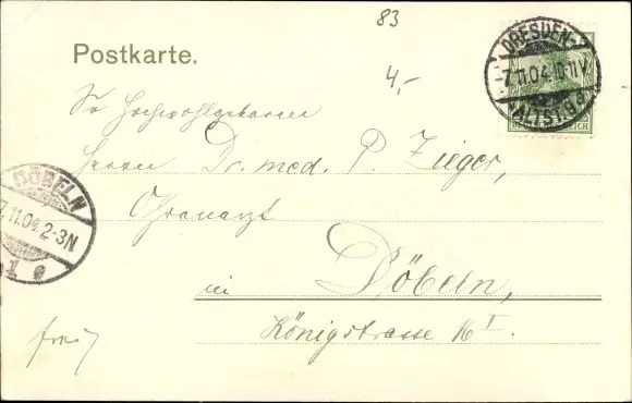 Zustand, siehe Scan, gelaufen, 1904 - ca 14 cm X 9 cm