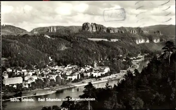 Ak Bad Schandau Sächsische Schweiz, Totalansicht, Schrammsteine
