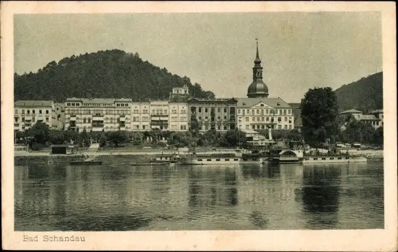 Ak Bad Schandau Sächsische Schweiz, Uferpartie