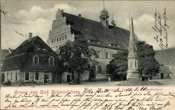 Ak Bad Schmiedeberg Dübener Heide, Rathaus, Kriegerdenkmal, Marktplatz