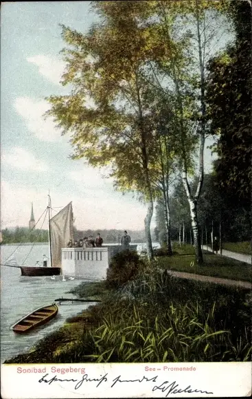 Ak Bad Segeberg in Schleswig Holstein, Seepromenade, Segelboot