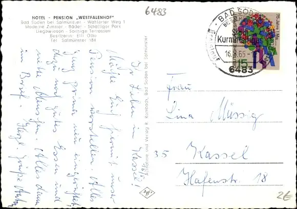 Zustand, siehe Scan, gelaufen, 1965- Bes. E. Otto - ca 15 cm X 11 cm