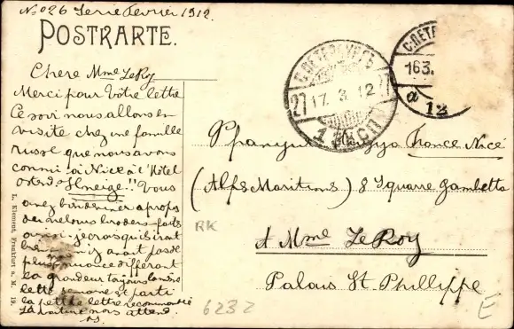 Zustand, siehe Scan, gelaufen, 1912 - ca 14 cm X 9 cm