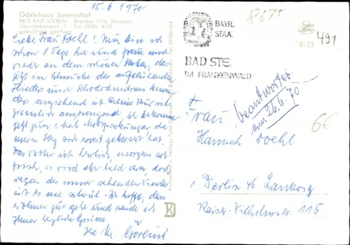 Zustand, siehe Scan, gelaufen, 1970- Bes. Fritz Drechsel - ca 15 cm X 11 cm