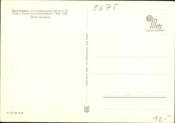 Ak Bad Steben in Oberfranken, Staatl. Kurhaus