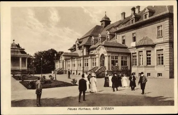 Ak Bad Steben in Oberfranken, neues Kurhaus, Passanten