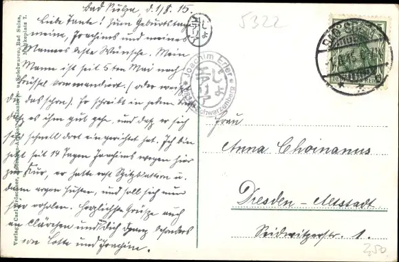 Zustand, siehe Scan, gelaufen, 1915 - ca 14 cm X 9 cm