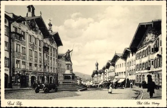 Ak Bad Tölz im Isartal Oberbayern, Straßenpartie, Denkmal