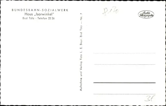 Ak Bad Tölz in Oberbayern, Haus Isarwinkel, Bundesbahn Sozialwerk