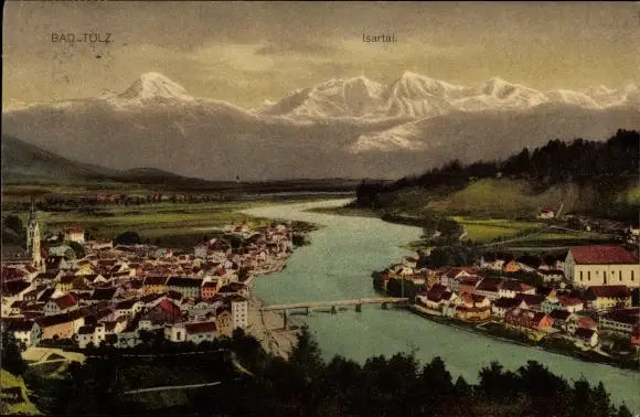 Ak Bad Tölz in Oberbayern, Isartal, Panorama