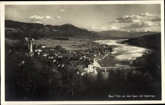 Ak Bad Tölz in Oberbayern, Panorama, Isar, Kirche, Gebirge