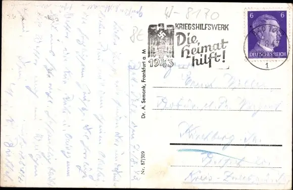 Zustand, siehe Scan, gelaufen, 1943 - ca 14 cm X 9 cm