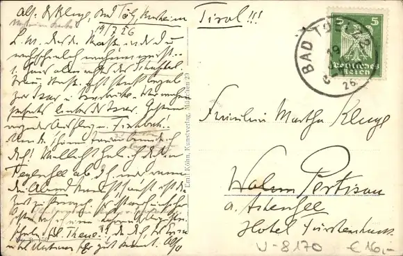 Zustand, siehe Scan, gelaufen, 1926 - ca 14 cm X 9 cm
