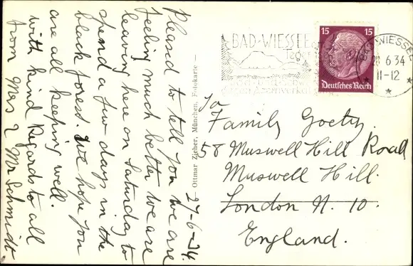 Zustand, siehe Scan, gelaufen, 1934 - ca 14 cm X 9 cm