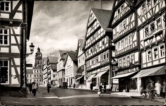 Ak Bad Wildungen in Hessen, Fachwerkhäuser, Straßenpartie