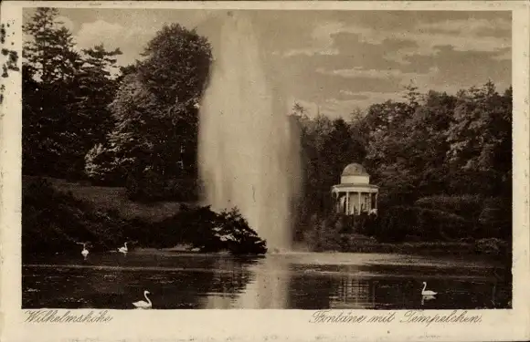 Ak Bad Wilhelmshöhe Kassel in Hessen, Fontäne, Tempelchen, Schwäne