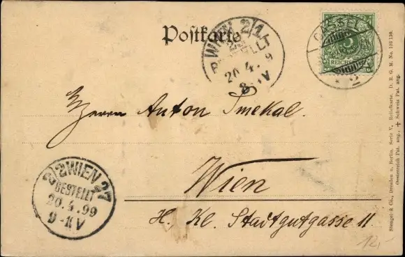 Zustand, siehe Scan, gelaufen, 1899 - ca 14 cm X 9 cm