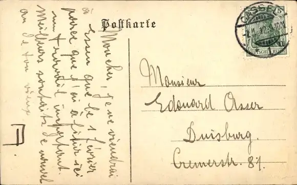 Zustand, siehe Scan, gelaufen, 1912 - ca 14 cm X 9 cm
