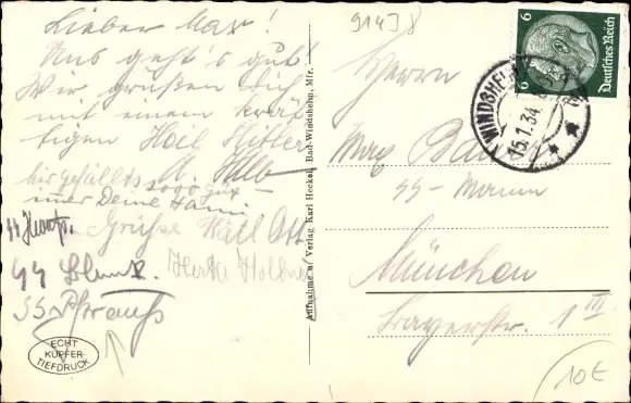 Zustand, siehe Scan, gelaufen, 1934 - ca 14 cm X 9 cm