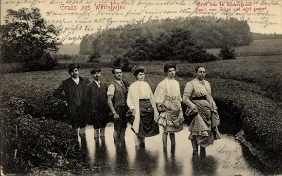 Ak Bad Wörishofen im Unterallgäu, Gruppe beim Wassertreten