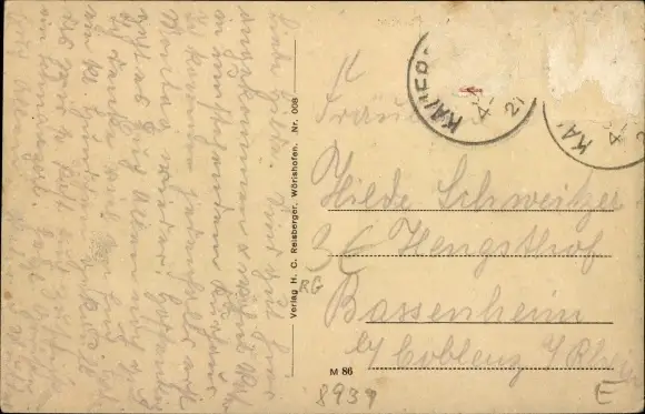 gelaufen 1921, Briefmarke entfernt, sonst guter Zustand
