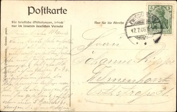 Zustand, siehe Scan, gelaufen, 1908 - ca 14 cm X 9 cm