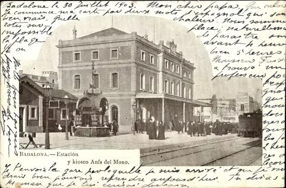 Ak Badalona Catalogne Espagne und Anfs del Mono Kiosk, Bahnhof