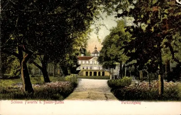 Ak Baden Baden, Schloss Favorite, Parkeingang