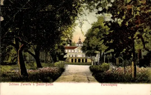 Ak Baden Baden, Schloss Favorite, Parkeingang