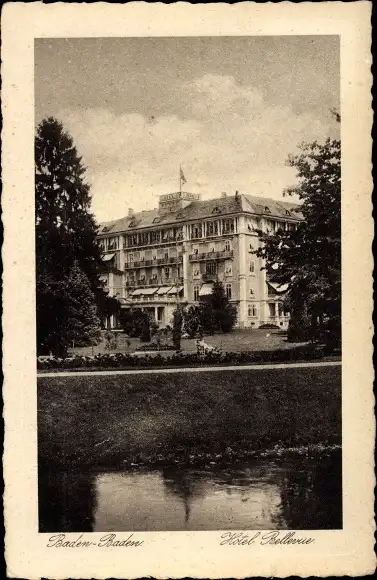 Ak Baden-Baden am Schwarzwald, Hotel Bellevue, Ansicht über Gewässer