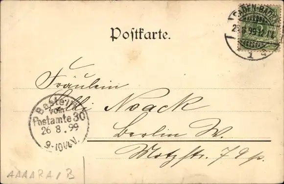 Zustand, siehe Scan, gelaufen, 1899 - ca 14 cm X 9 cm