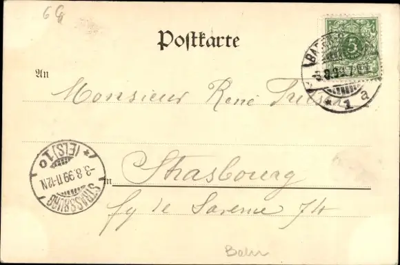 Zustand, siehe Scan, gelaufen, 1899 - ca 14 cm X 9 cm
