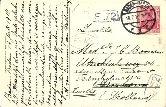 Zustand, siehe Scan, gelaufen, 1914 - ca 14 cm X 9 cm