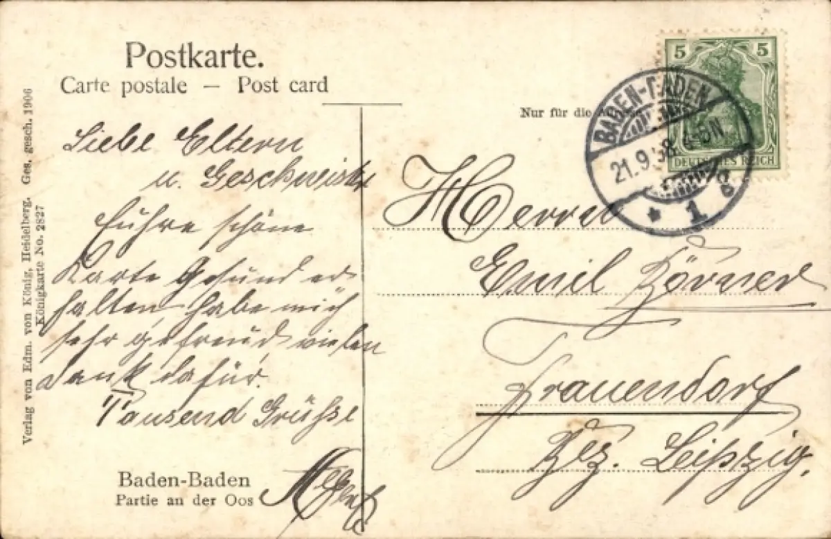 Ak Baden Baden am Schwarzwald, an der Oos