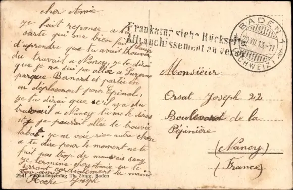 Zustand, siehe Scan, gelaufen, 1913 - ca 14 cm X 9 cm