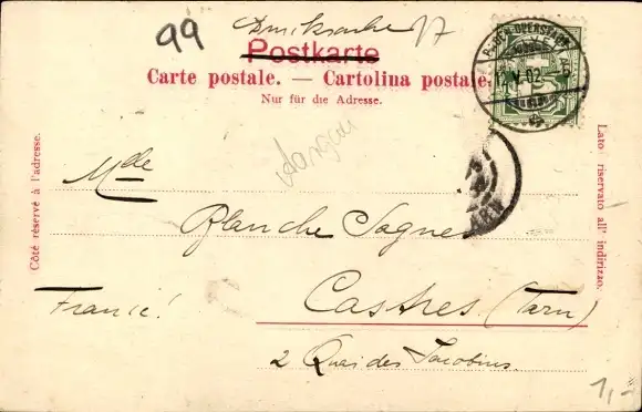 Zustand, siehe Scan, gelaufen, 1902 - ca 9 cm X 14 cm