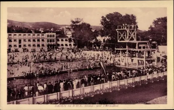 Ak Baden bei Wien in Niederösterreich, Strand und Thermalbad