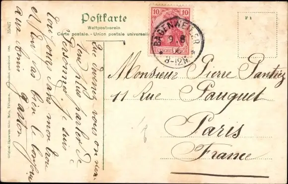 Zustand, siehe Scan, gelaufen, 1906 - ca 14 cm X 9 cm