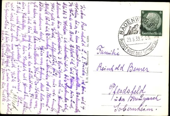Zustand, siehe Scan, gelaufen, 1939 - ca 15 cm X 10 cm