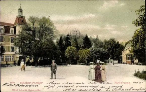 Ak Badenweiler im Schwarzwald, Parkeingang, Spaziergänger