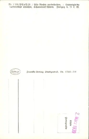 Zustand siehe Scan, ungelaufen, 1939 - ca 14 cm X 9 cm