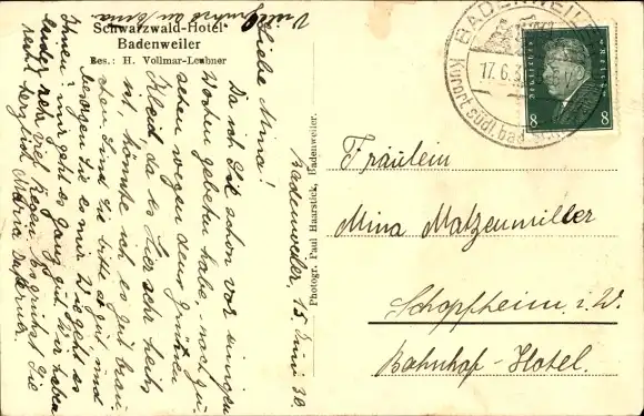 Ak Badenweiler im Schwarzwald, Schwarzwald Hotel