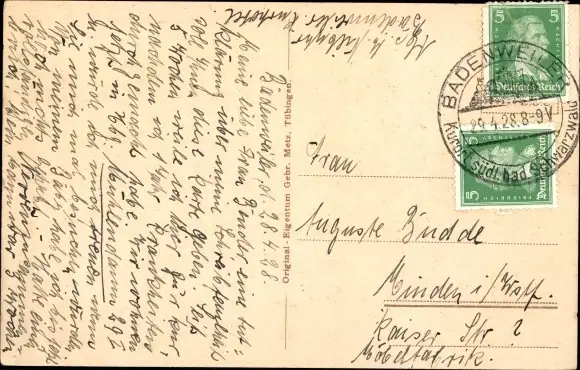 Zustand, siehe Scan, gelaufen, 1928 - ca 14 cm X 9 cm