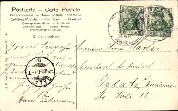 Zustand, siehe Scan, gelaufen, 1907 - ca 9 cm X 14 cm