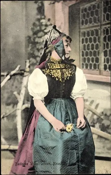 Ak Badische Volkstrachten aus Neustadt, Junge Frau, Blume