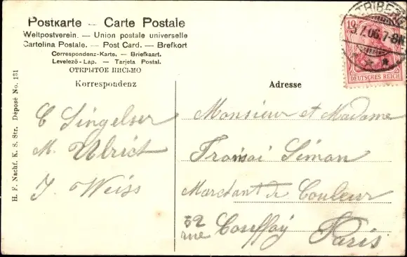 Zustand, siehe Scan, gelaufen, 1906 - ca 9 cm X 14 cm